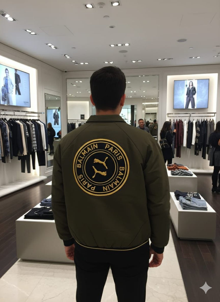 Men’s Premium Bomber Jacket with Luxury Back Logo – Stylish & Warm