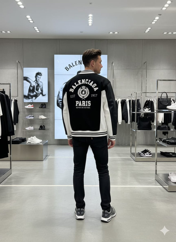 Men’s Premium Black & White Varsity Jacket – Classic Street Style