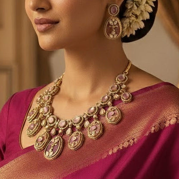 Handcrafted Holdali Victorian-Polish Moissanite Polki Necklace Set