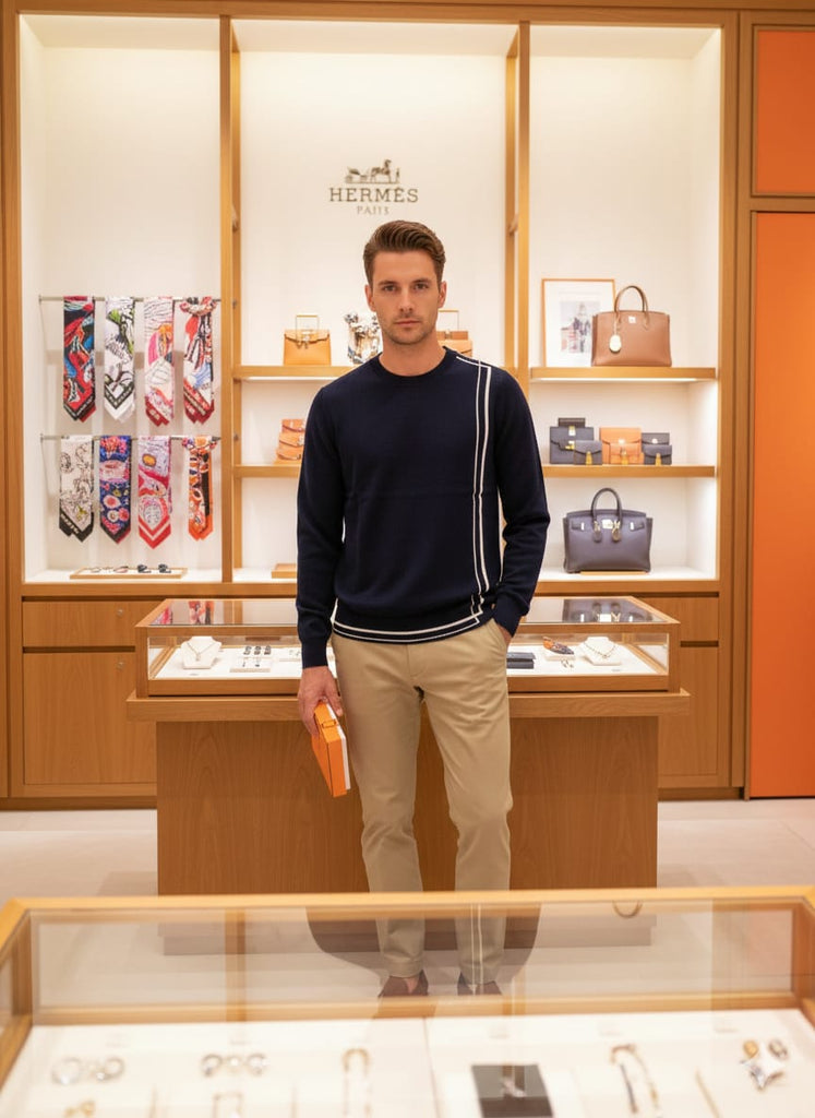 Men’s Wool Pullover with Signature Contrast Stripe Detailing