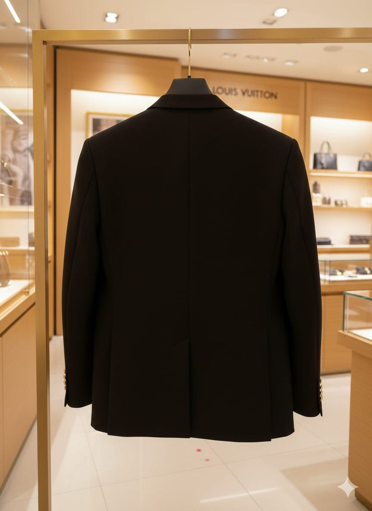 Luxury Black Blazer with Signature Monogram Pocket