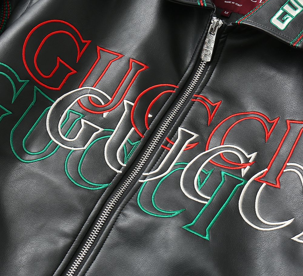 Premium Black Leather Look Jacket with Bold Multi-Color Embroidery