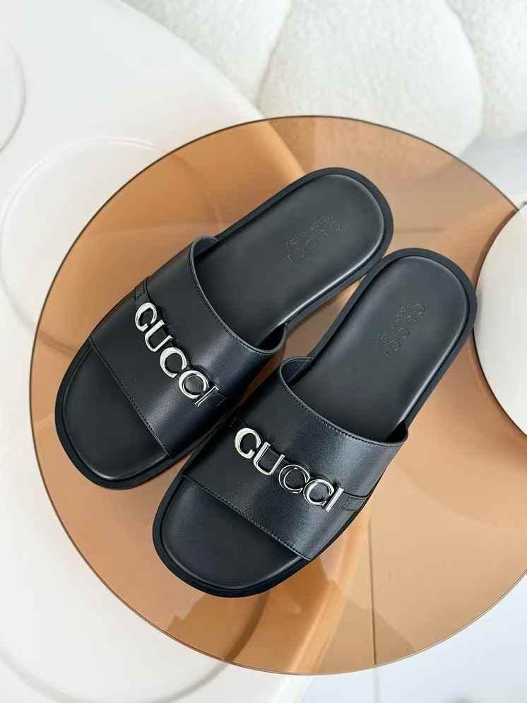 Men’s Luxury Black Leather Slides Iconic Comfort and Style
