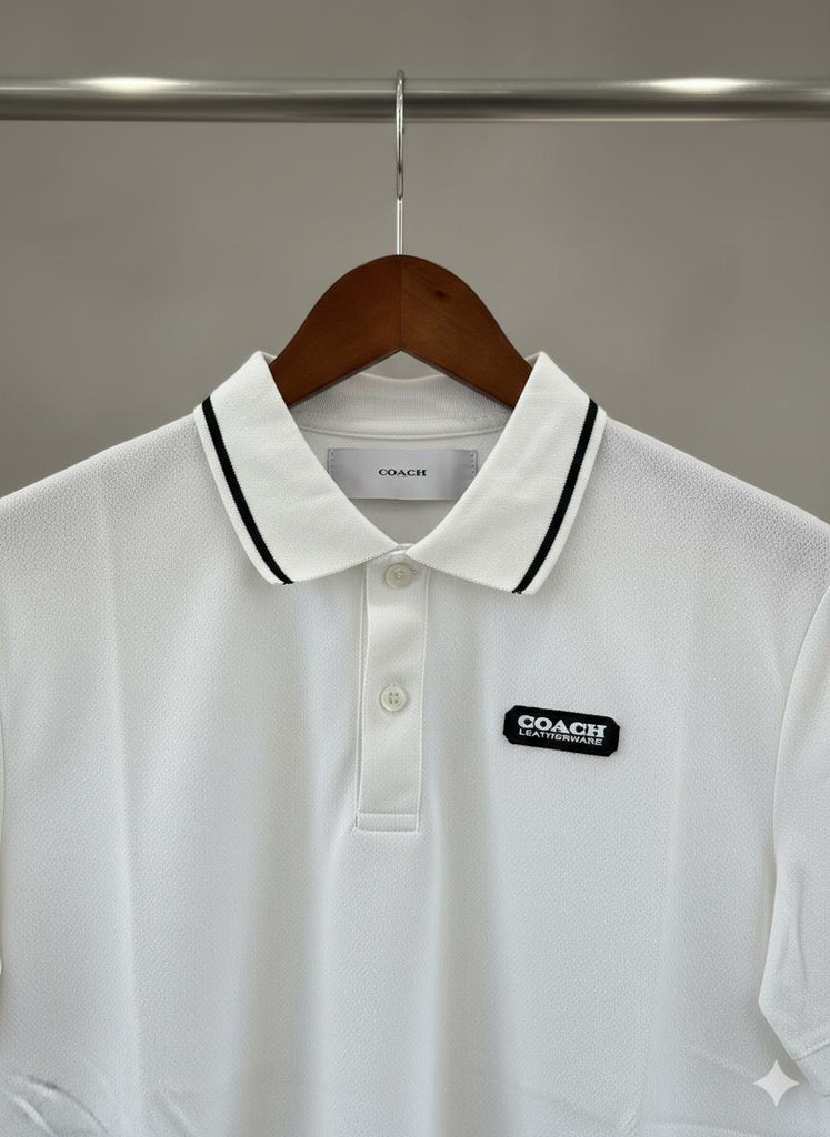 Polo collar with white piping for a classy touch