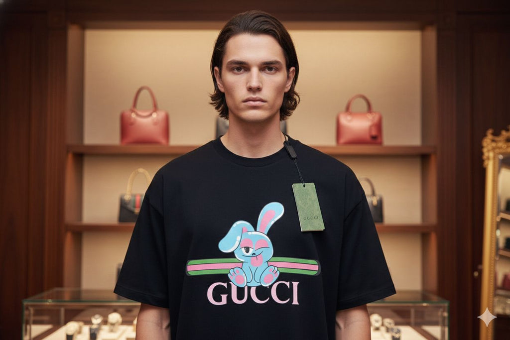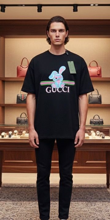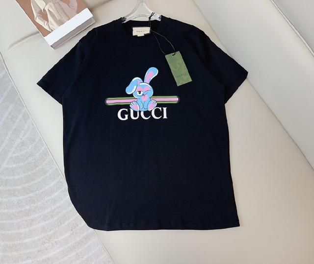 Premium Cute Rabbit Printed Black Drop Shoulder T-shirt