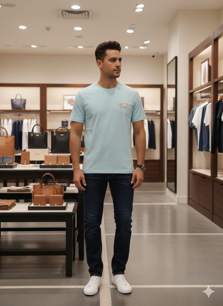 Sky Blue Graphic T-Shirt with Ice Cream Back Print