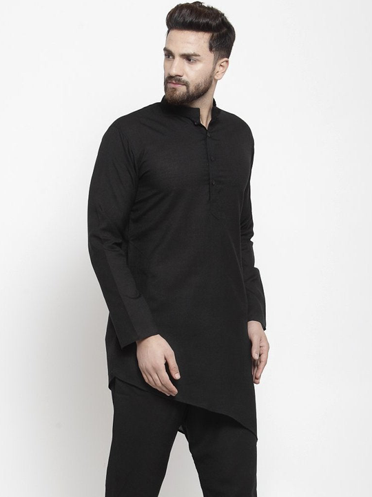 Black Fornt Cut Kurta has a Mandarin collar Neck , long sleeves, rich linen blend,You Can Wear For Everyday Or Special Occasions.