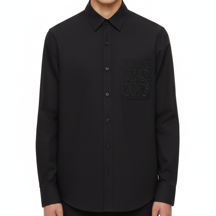 Men’s Classic Black Shirt with Embroidered Chest Detail