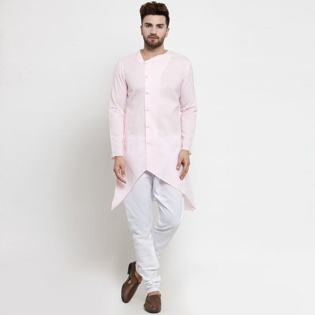 Designer Pink Linen Kurta With Chudidar Pajama For Men By Treemoda