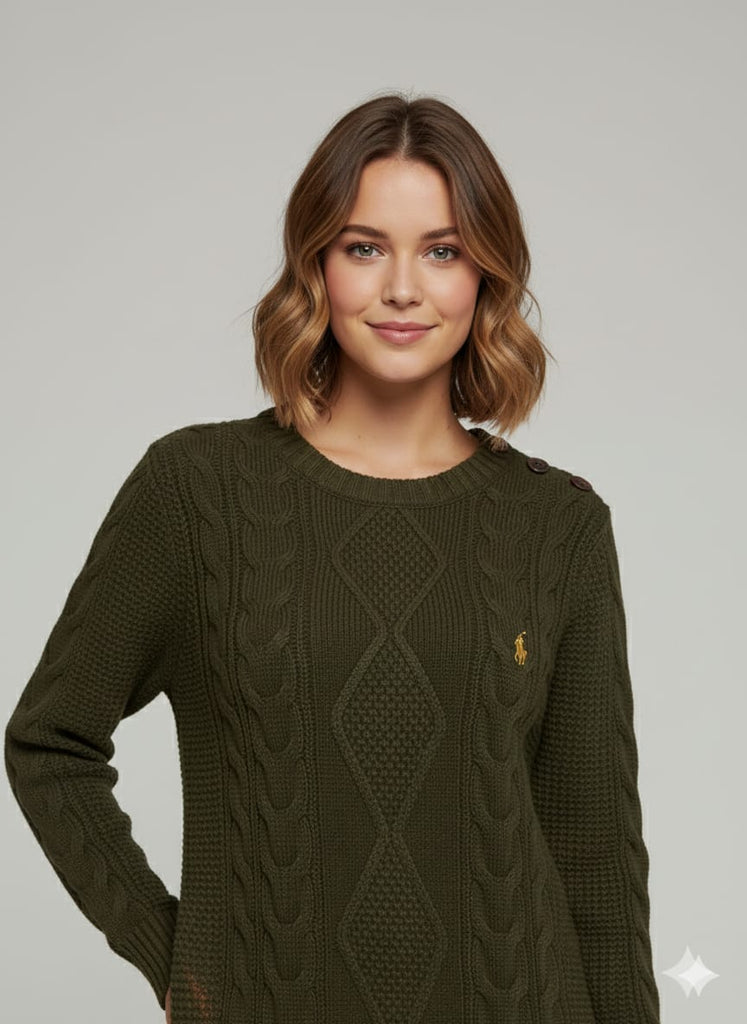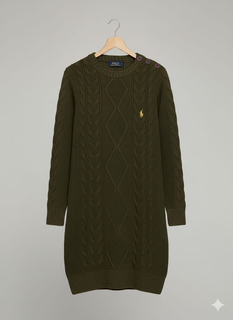 Olive Green Cable-Knit Sweater Dress for Women