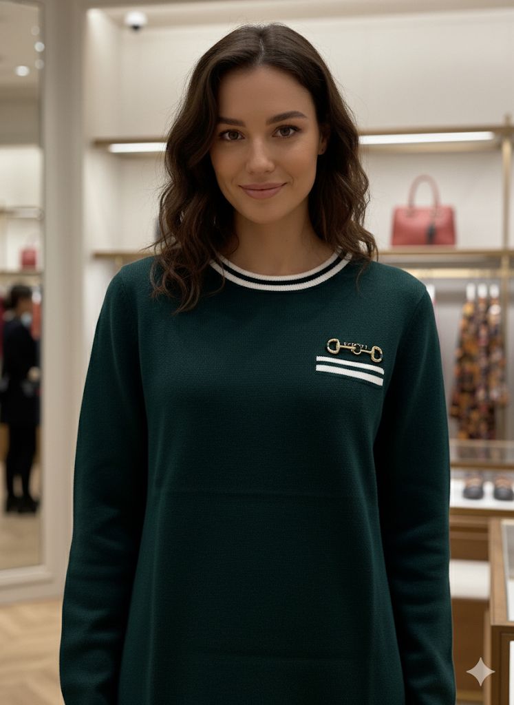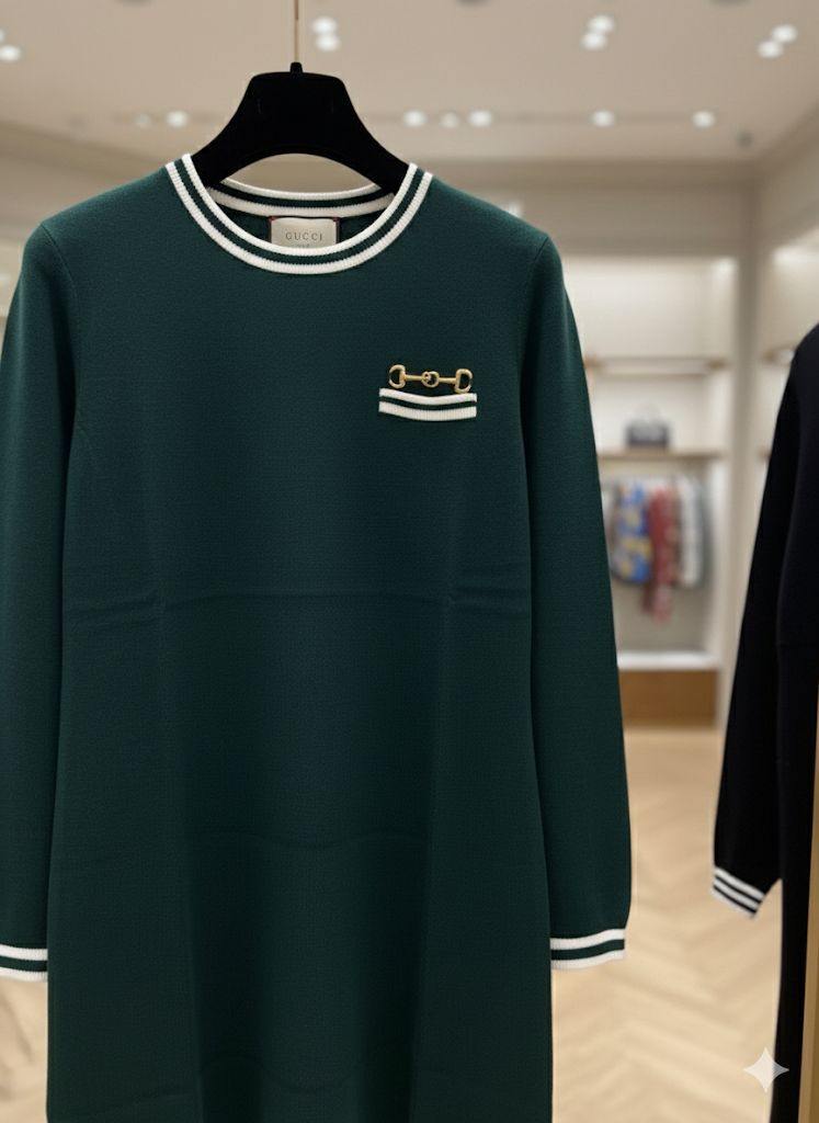Premium Knitted Dress with Gold Accent Pocket for Women