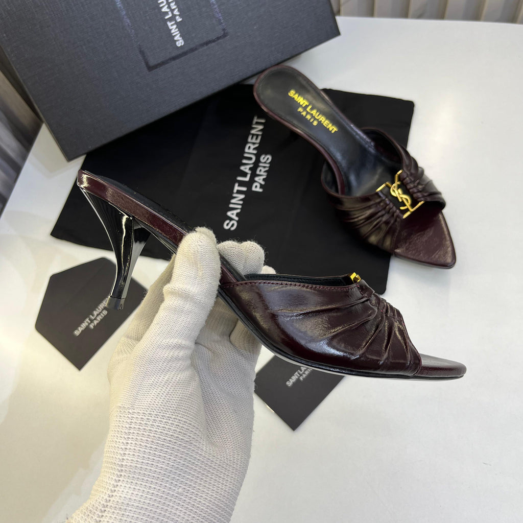 Elegant Open-Toe Heeled Slippers with Signature Gold Accent