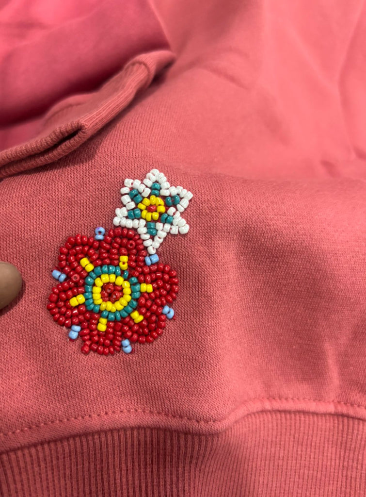 Soft pink sweatshirt with a relaxed, comfortable fit.