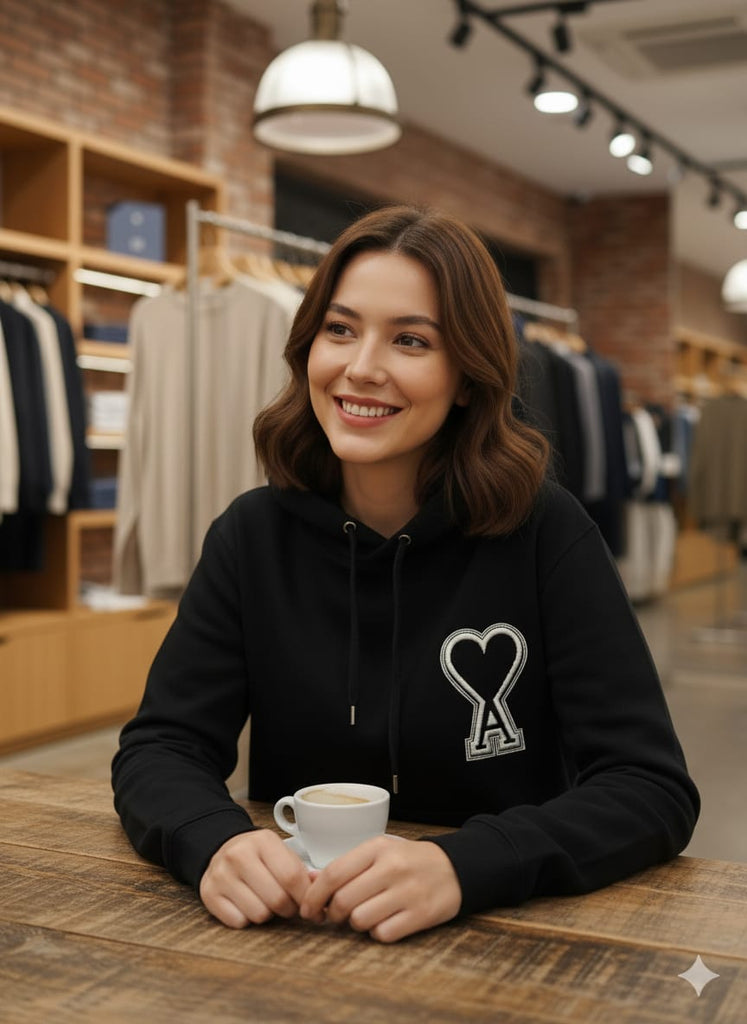 Luxury Black Heart Logo Women’s Hoodie – Stylish & Cozy
