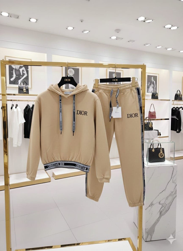 Luxury Beige Tracksuit Set with Contrast Trim Logo