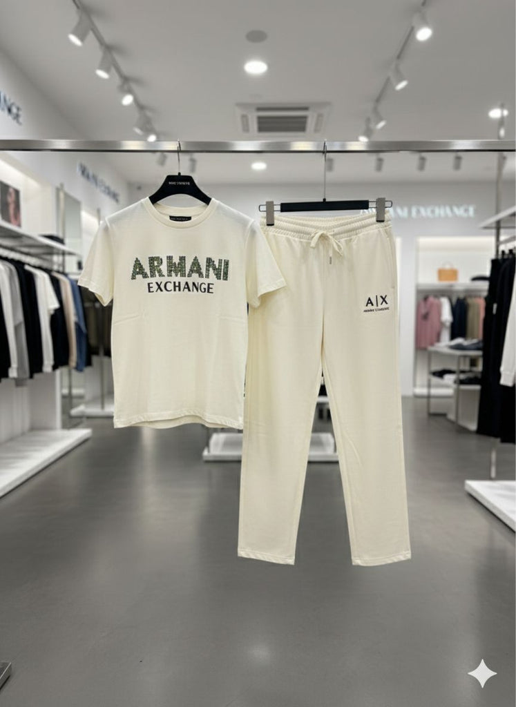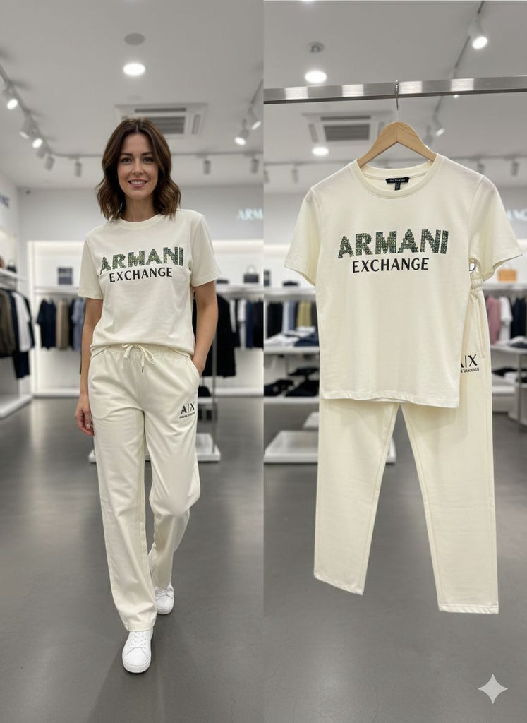 Women’s Premium Cream Co-Ord Set Stylish Printed T-Shirt with Matching Track Pant