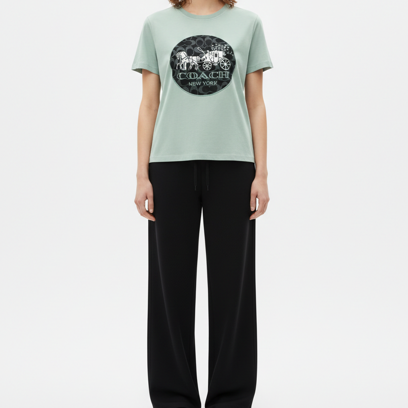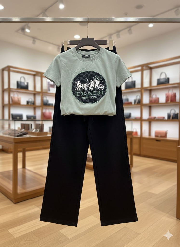 Women’s Printed T-Shirt with Black Straight Pants Stylish Casual Co-Ord Set