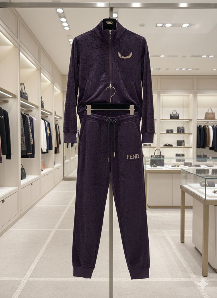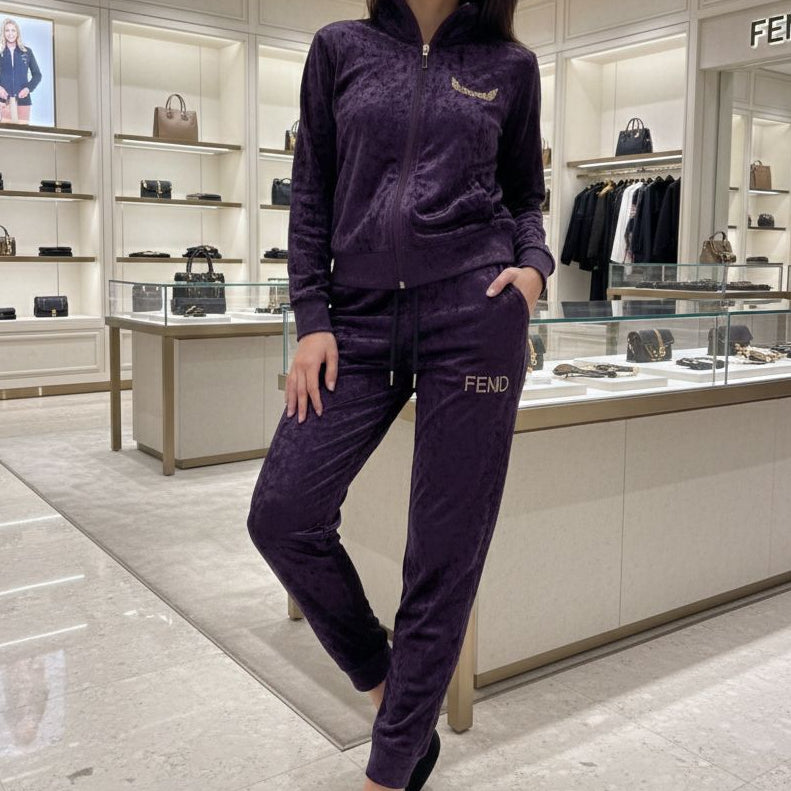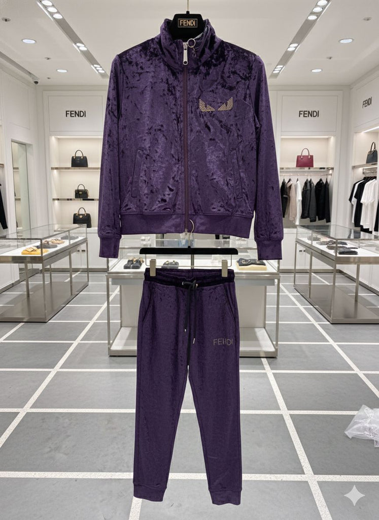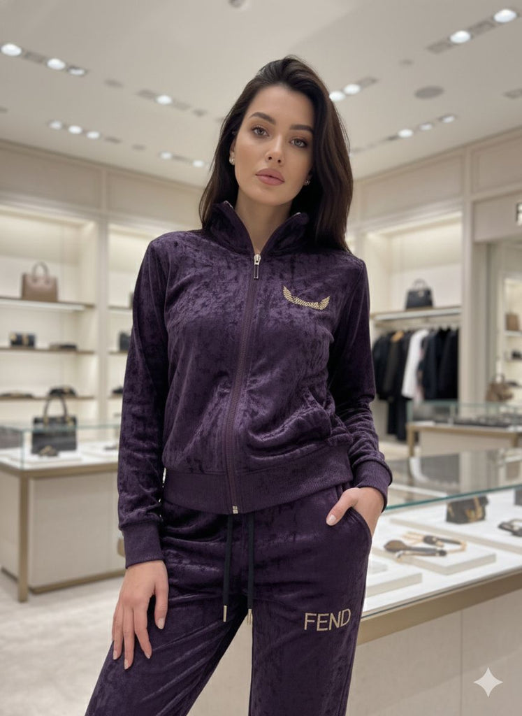 Women’s Purple Velvet Tracksuit with Logo Detail