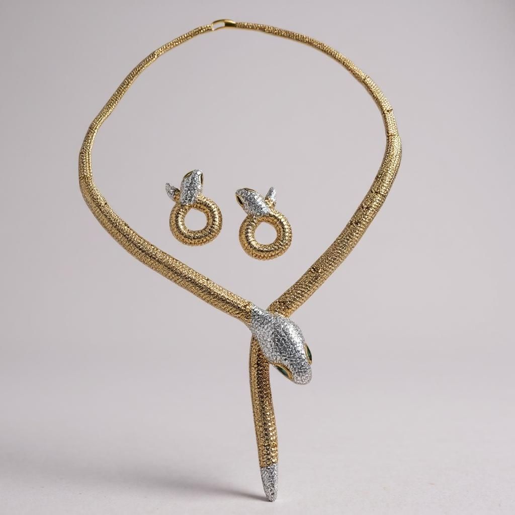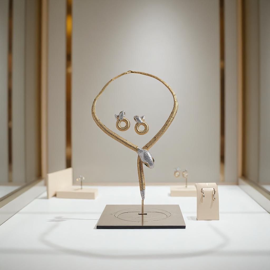 Luxury Serpenti Necklace & Earrings Set – Gold-Tone with Diamond Detailing
