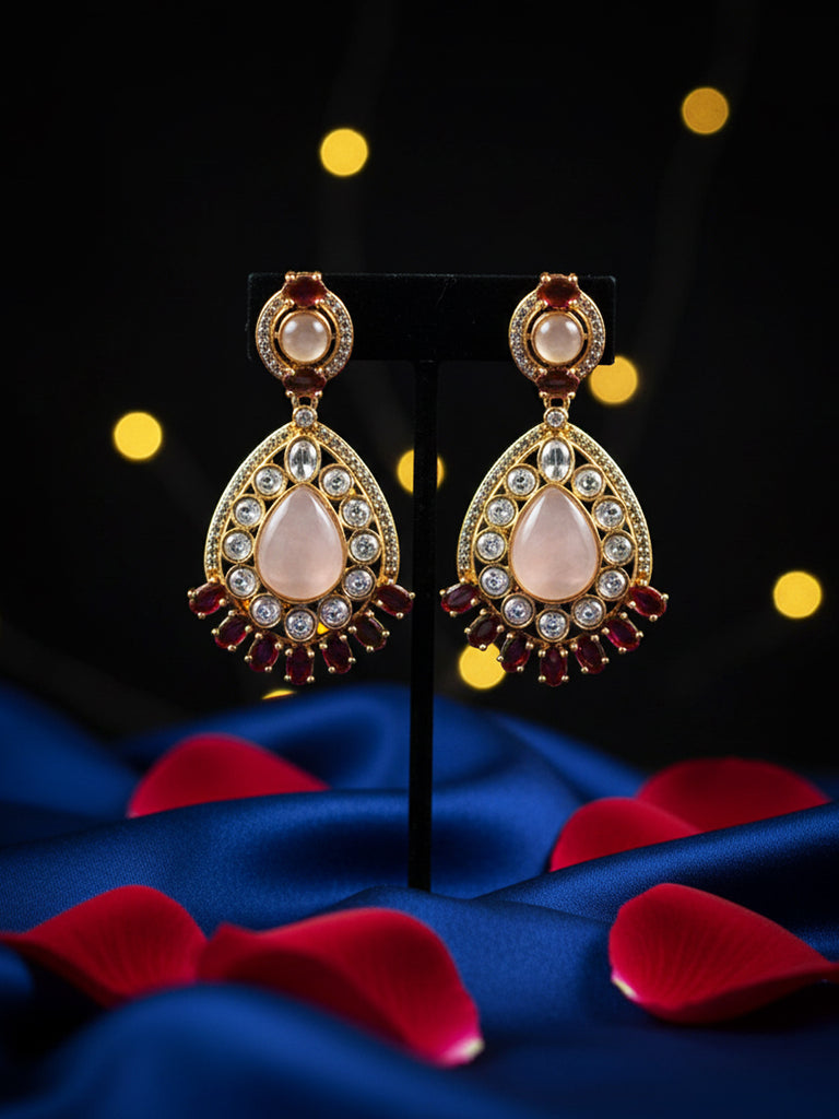 - Teardrop-shaped pendant and earrings enhance the elegant style.