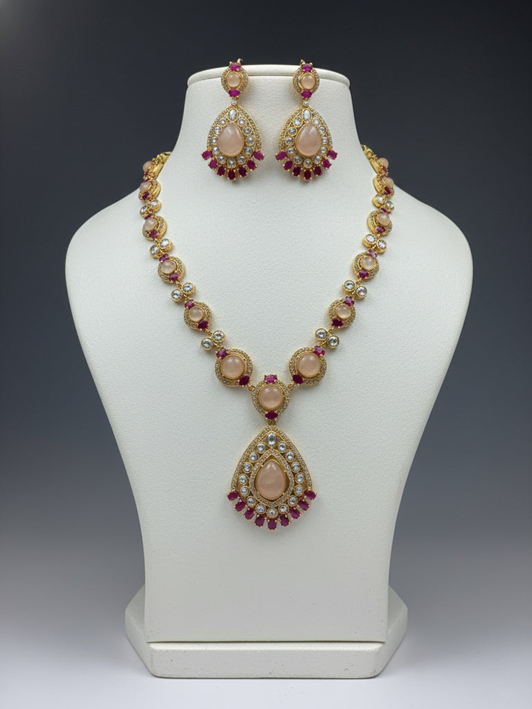 Royal Semi-Precious Stone Moissanite Polki Necklace Set