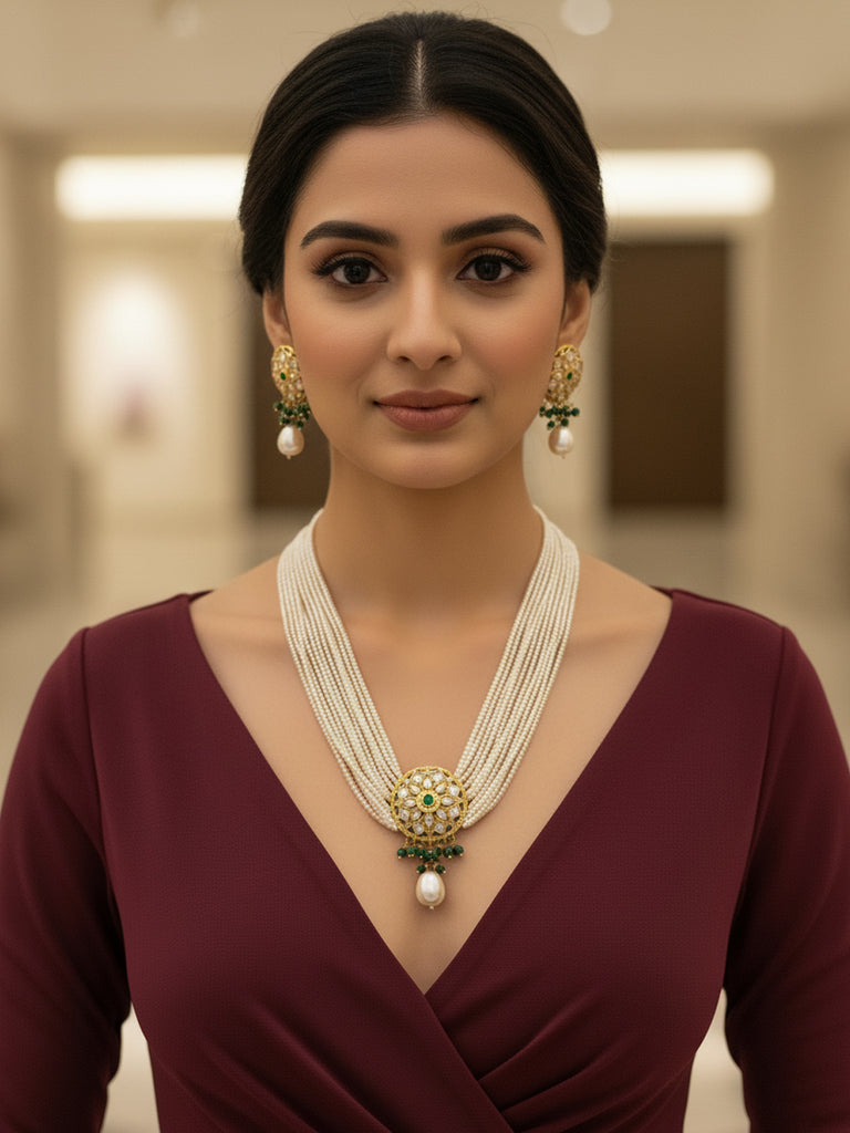 • Comes with matching earrings designed in the same Kundan and bead pattern.