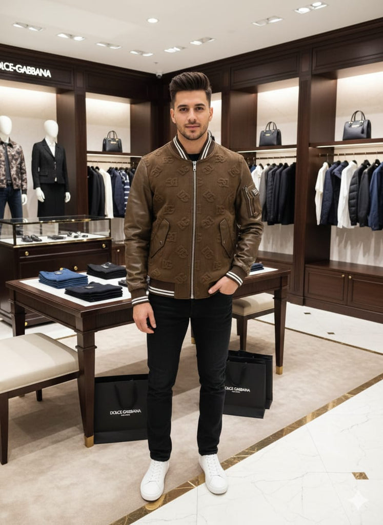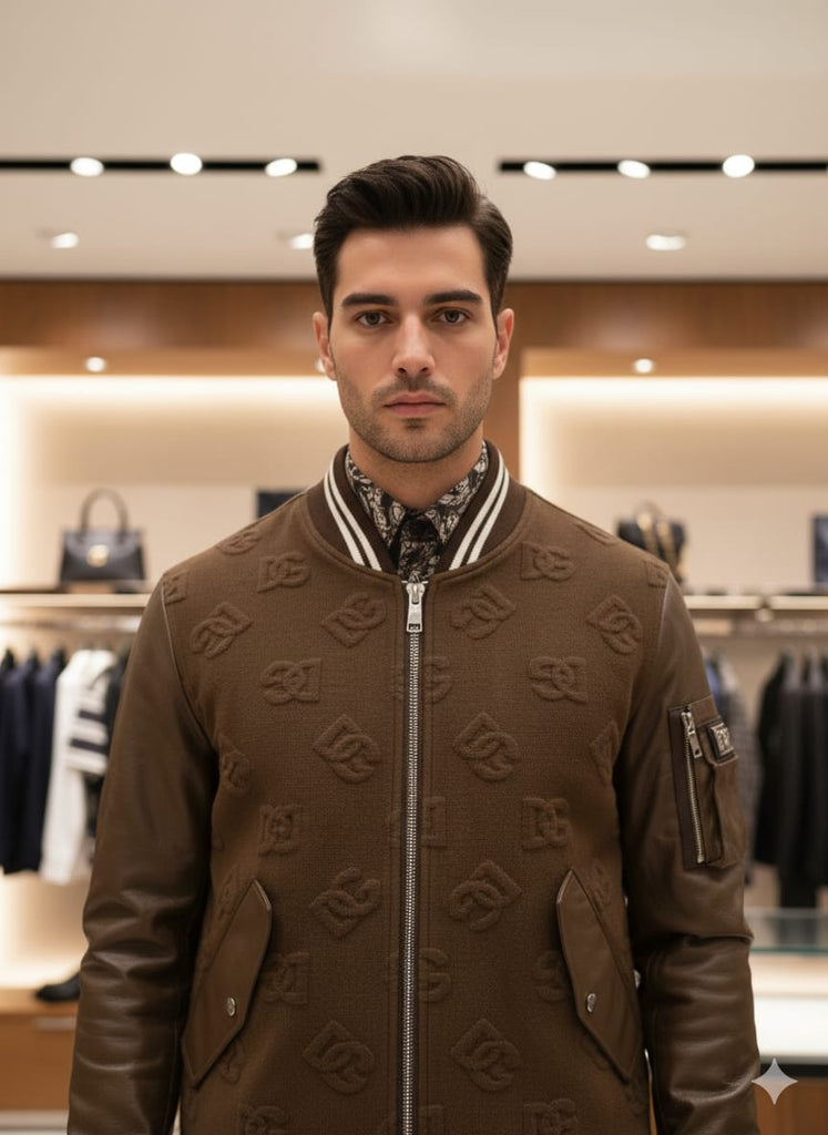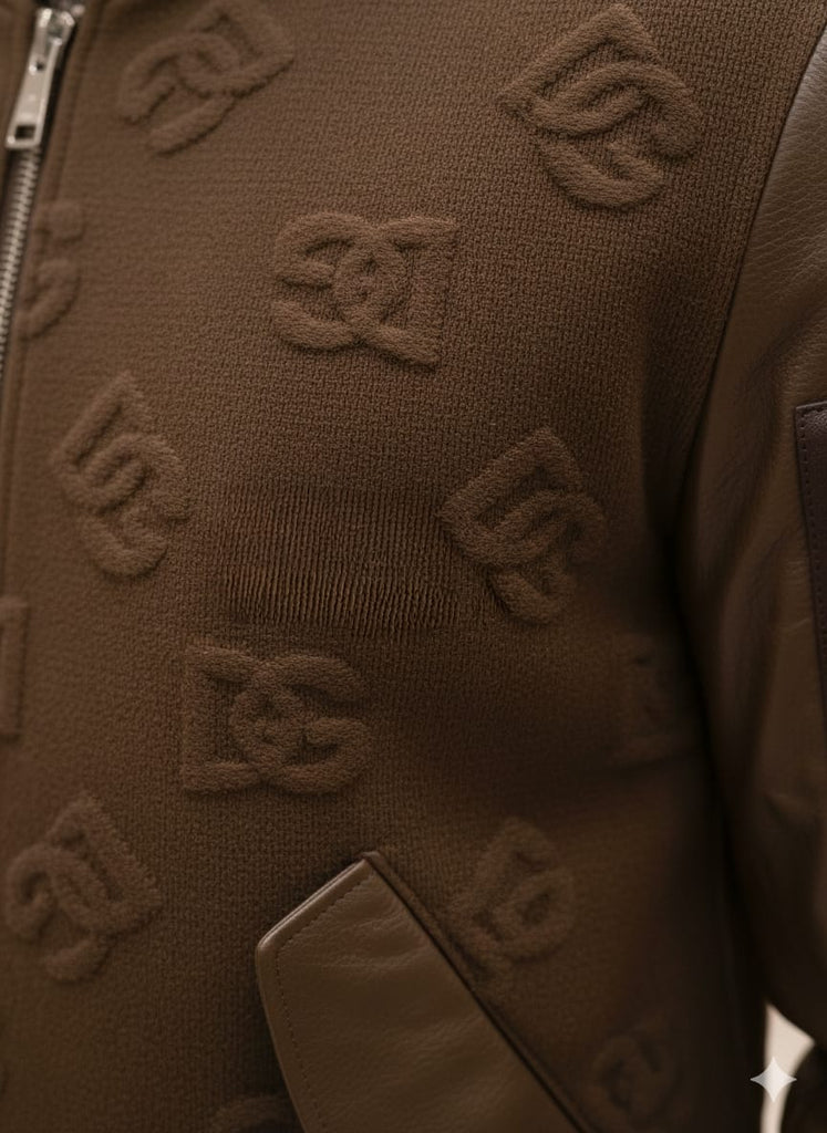 Premium Brown Bomber Jacket with Embossed Designer Pattern