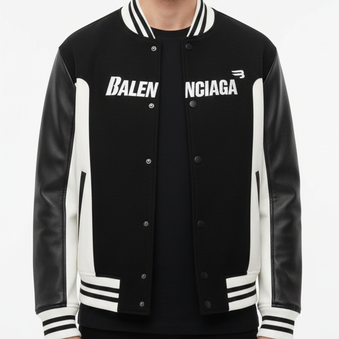 Men’s Premium Black & White Varsity Jacket – Classic Street Style