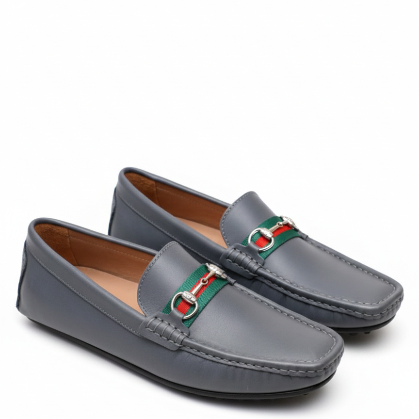 Classic Grey Leather Loafers Iconic Horsebit Slip-On Shoes