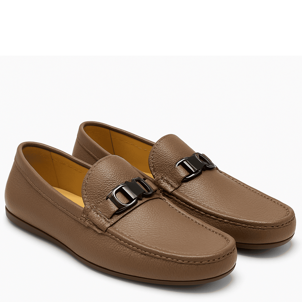 Luxury Brown Leather Loafers with Signature Metal Logo