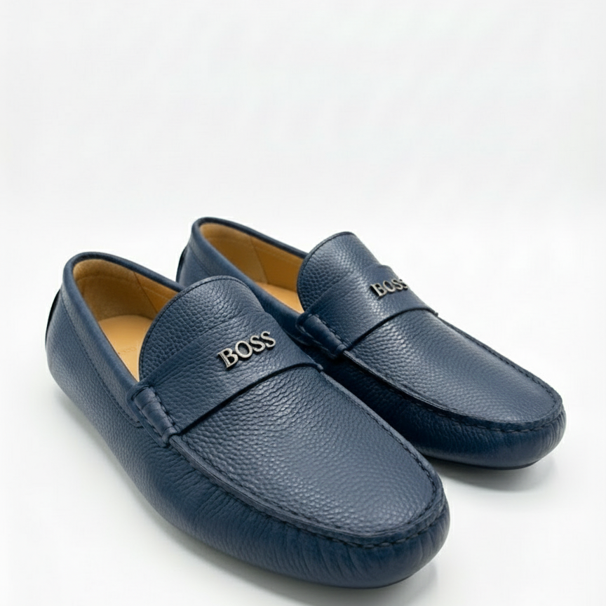 Stylish navy blue loafers with a classic premium look