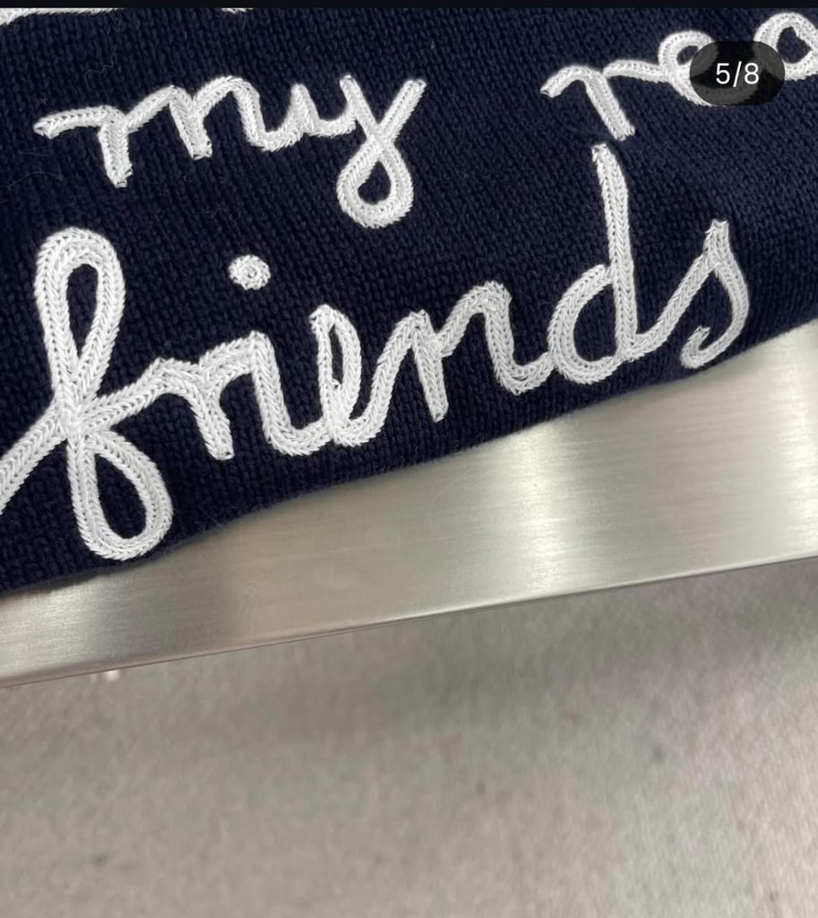 Branded Navy Blue Knit Sweater Effortless Luxury Statement