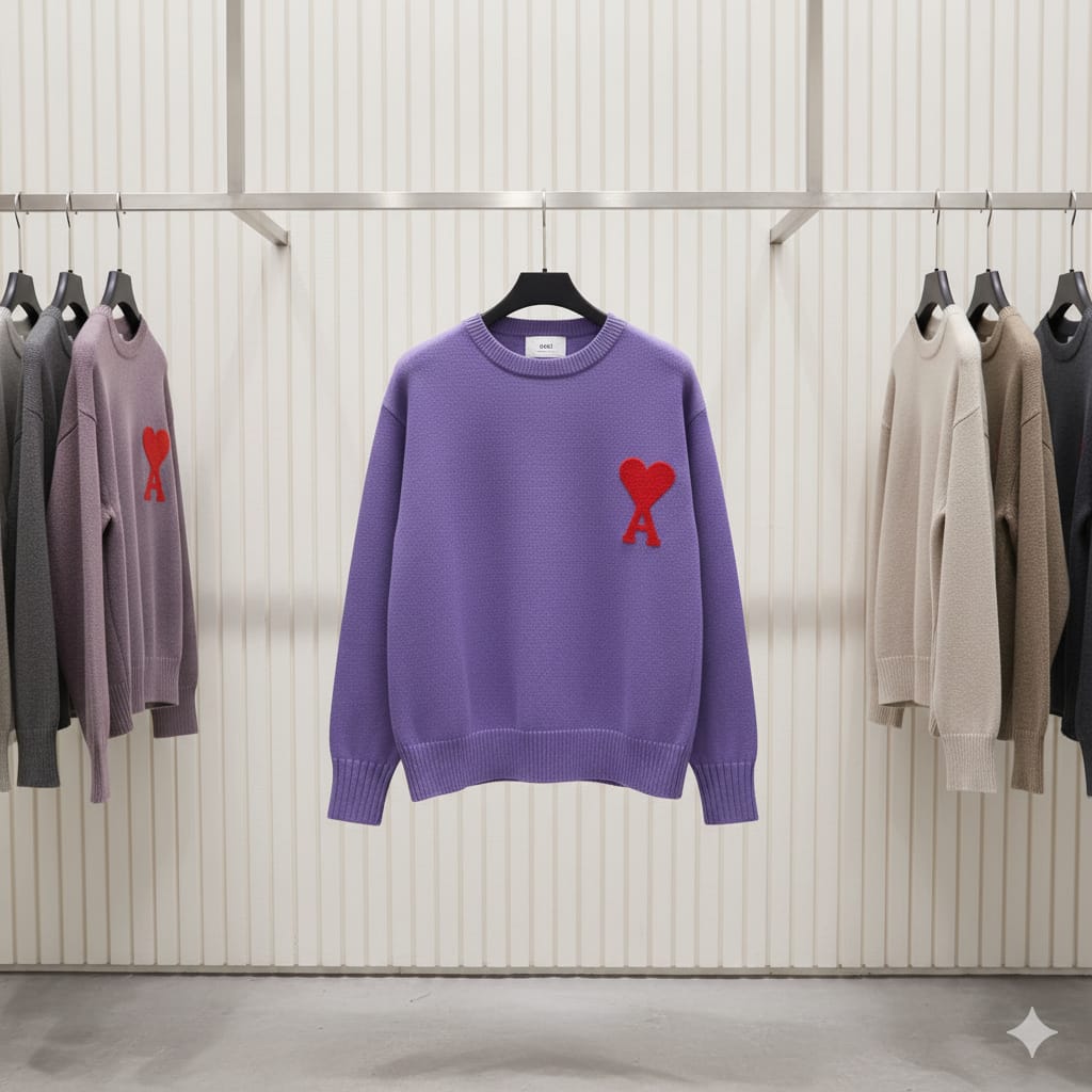Classic Lavender Knit Sweater with Heart Logo Detail