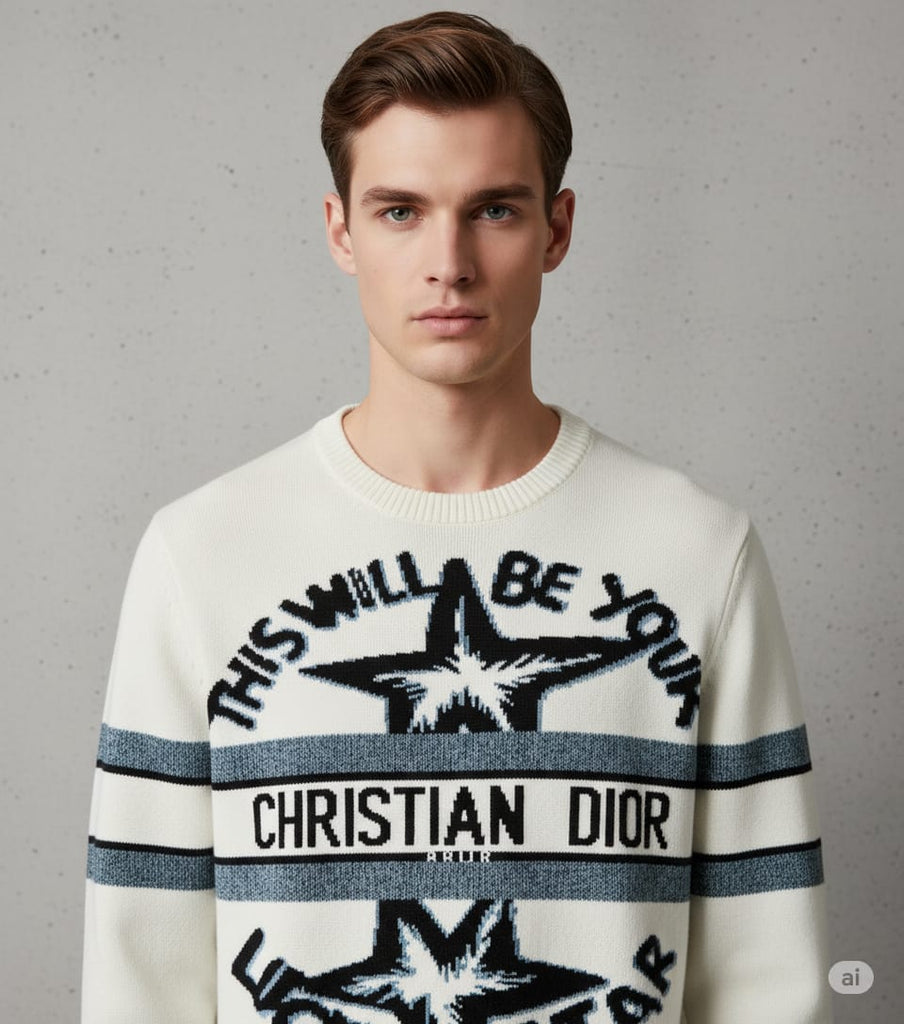 Iconic Dior typography and star motif, adding a modern yet classic touch
