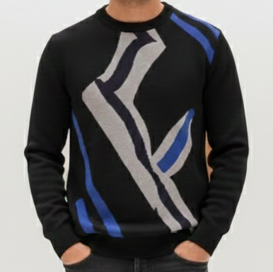 Luxury Black Men’s Designer Sweater with Modern Abstract Pattern