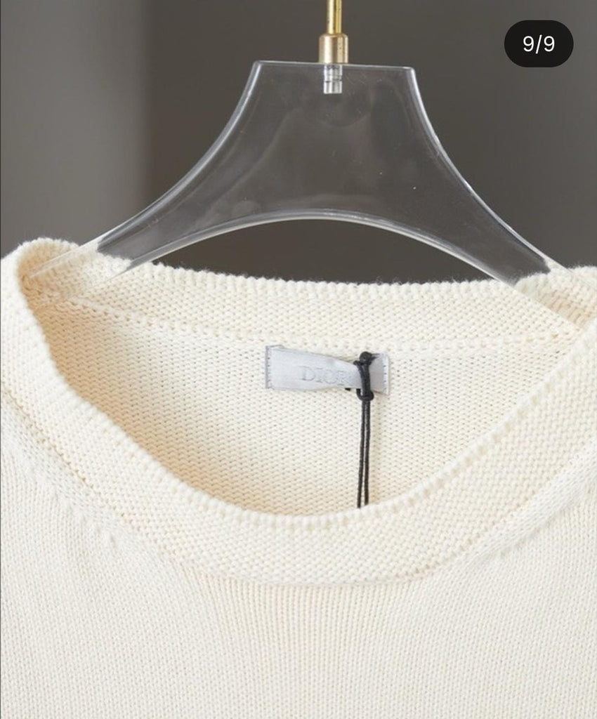 Premium Off-White Knitted Sweatshirt with Blue Embroidered Text