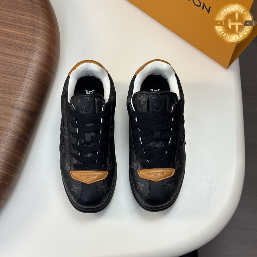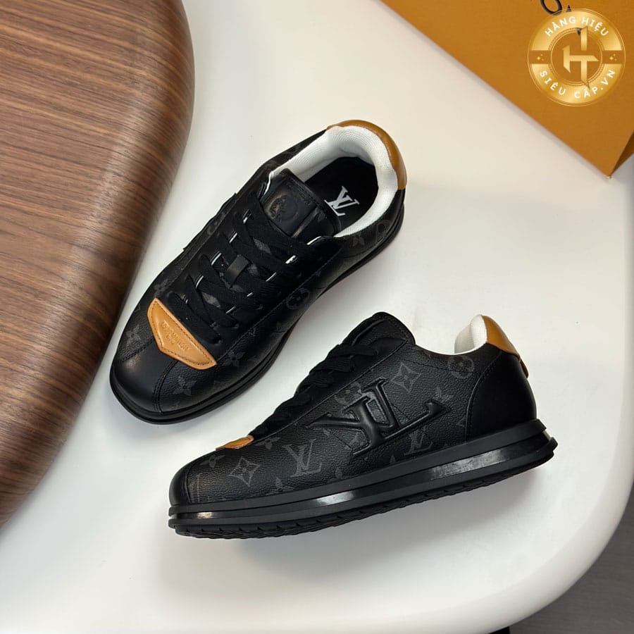 Premium Black Monogram Low-Top Sneakers with Gold Accent