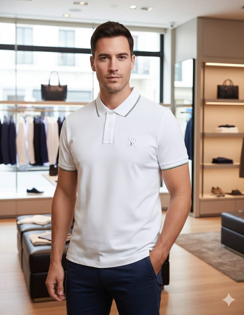 - Classic Polo Tee Design with a Sophisticated Touch.