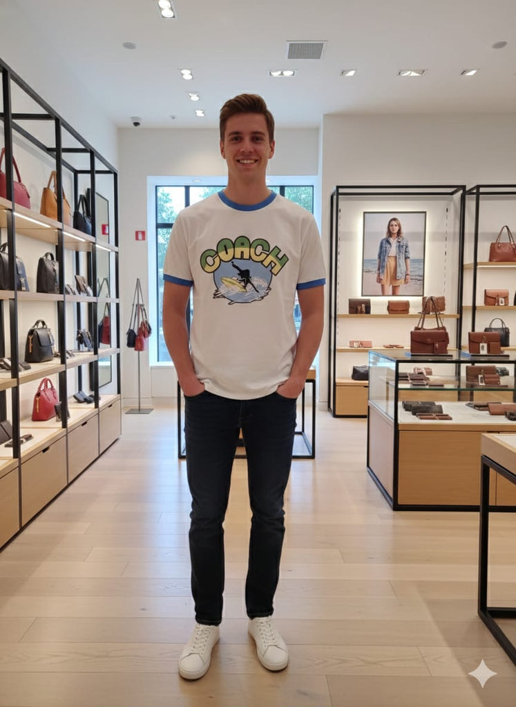 Premium Graphic Ringer T-Shirt for Men Surf Print Casual Tee