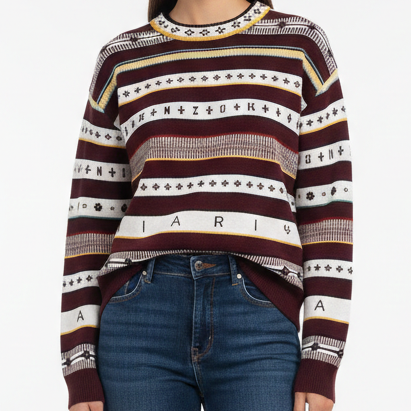 Rich burgundy color with stylish multicolor stripes