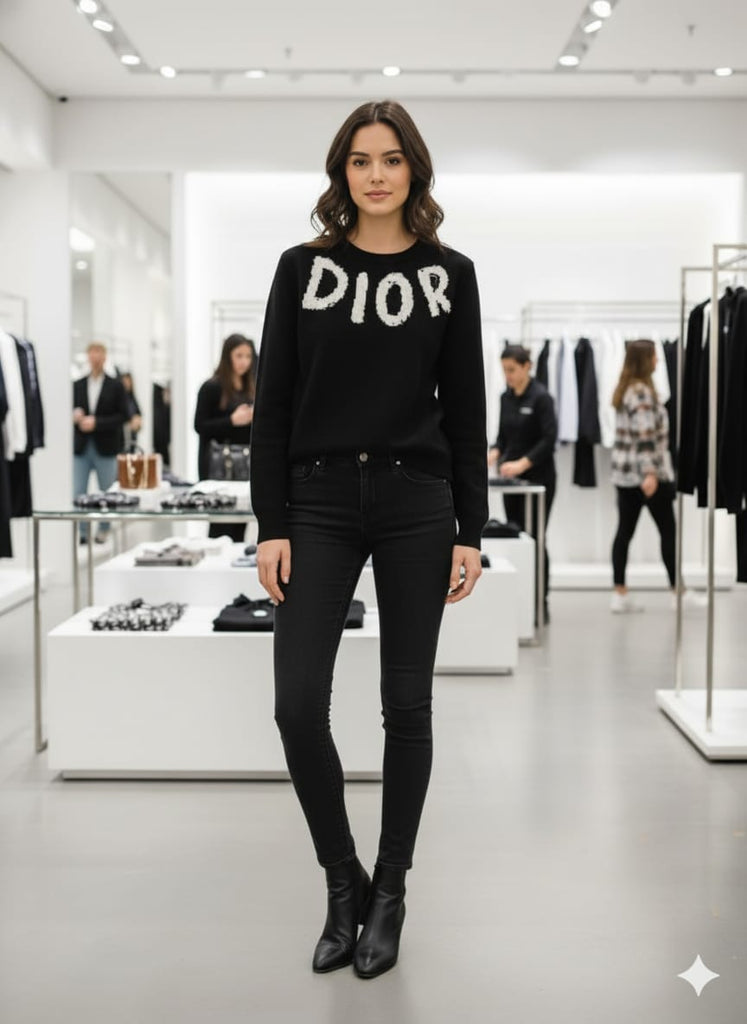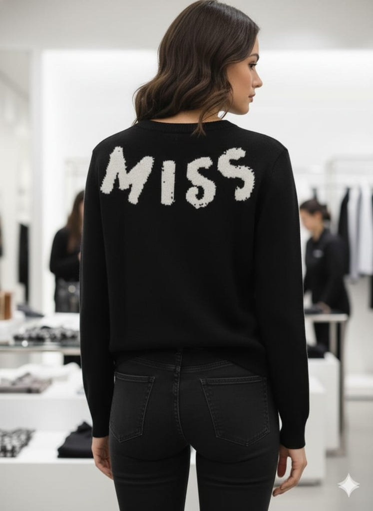 Men’s Black Luxury Knit Pullover with Bold Logo Design