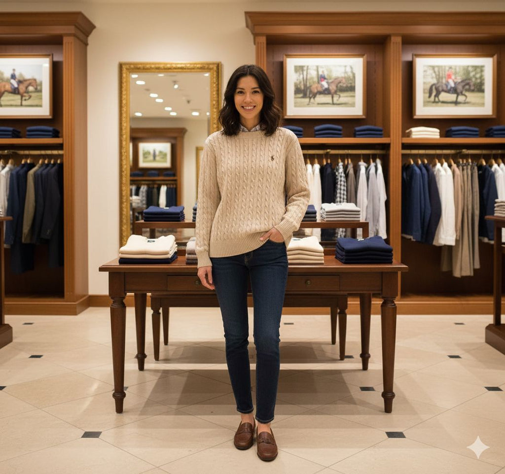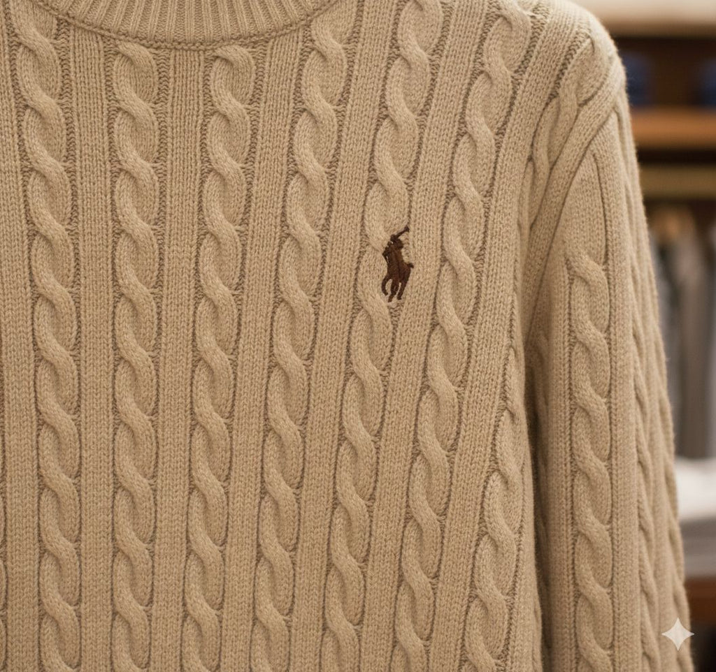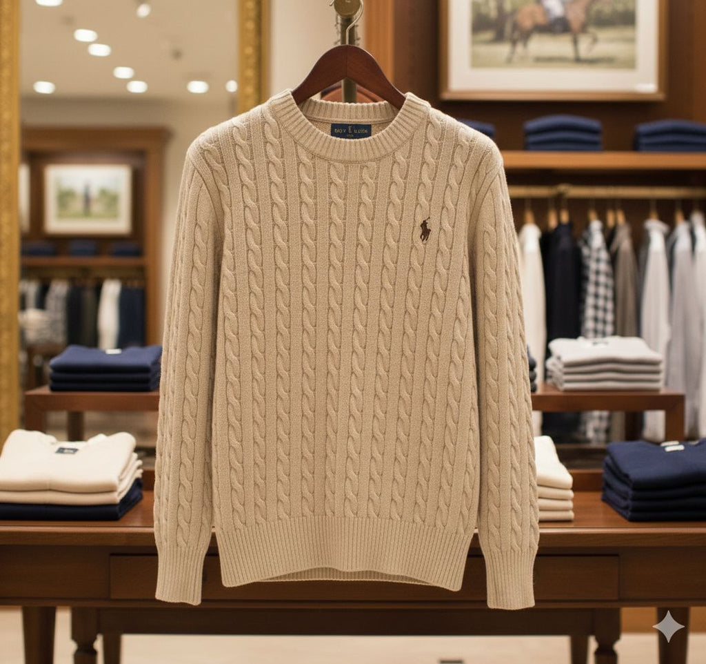 Premium Classic Beige Cable Knit Pullover For Women
