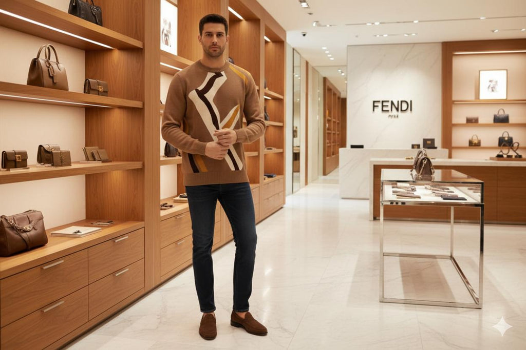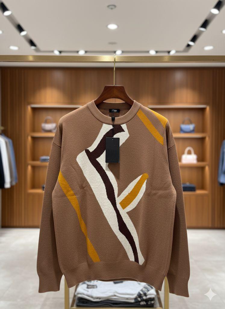 Luxury Beige Men’s Pullover with Modern Abstract Pattern