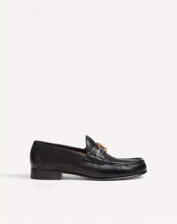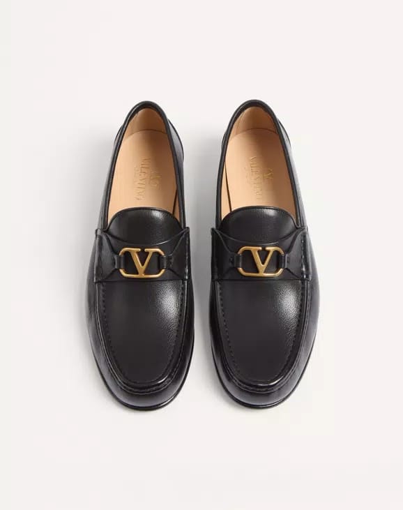 Luxury Black Leather Men’s Loafers with Elegant Gold Accent