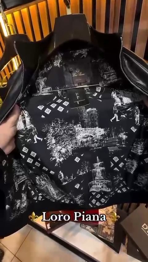 Premium Black Men’s Zip-Up Leather Jacket with Elegant Back Logo