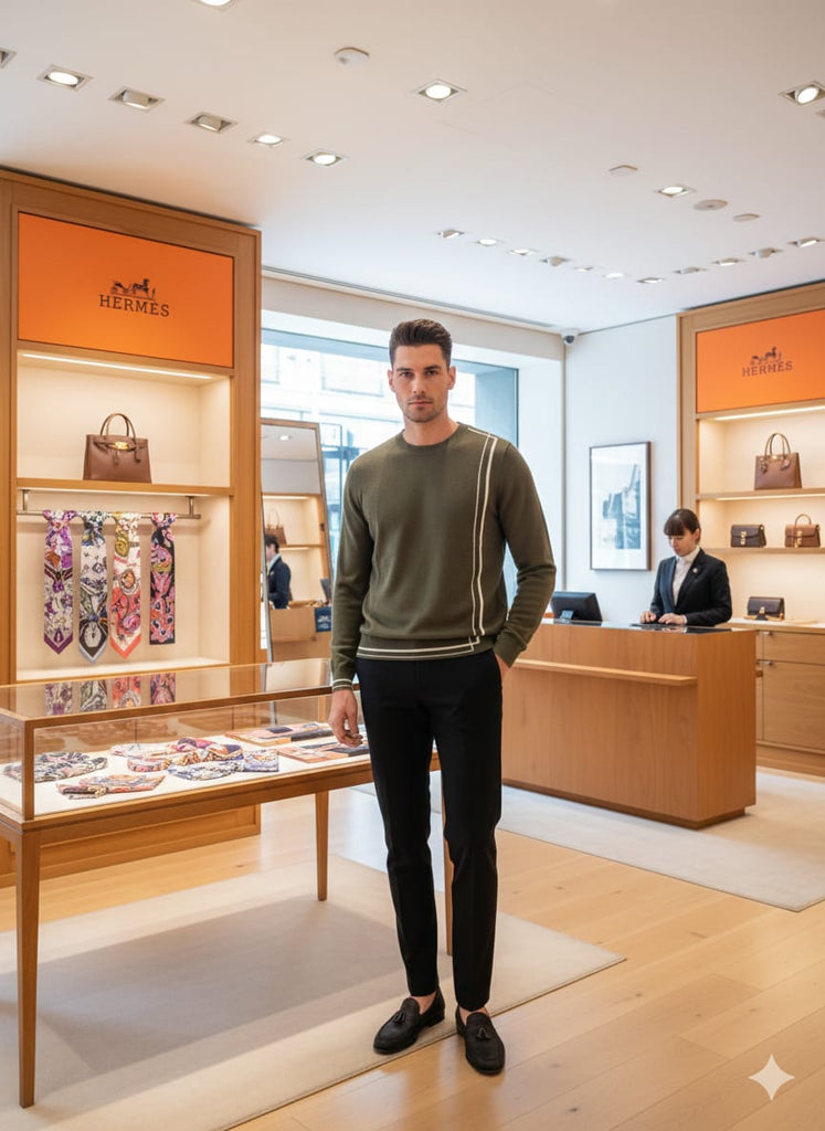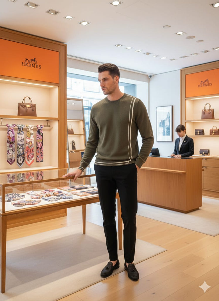 Men’s Olive green Designer Sweater with Contrast Stripe Detail