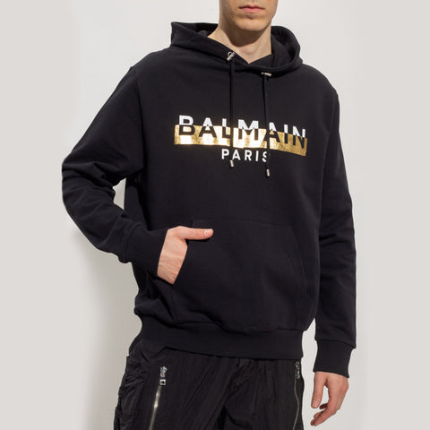 Branded Drawstring Hoodie In Black