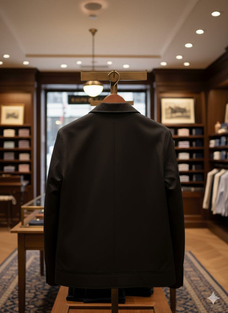 Elegant solid black jacket with a timeless style
