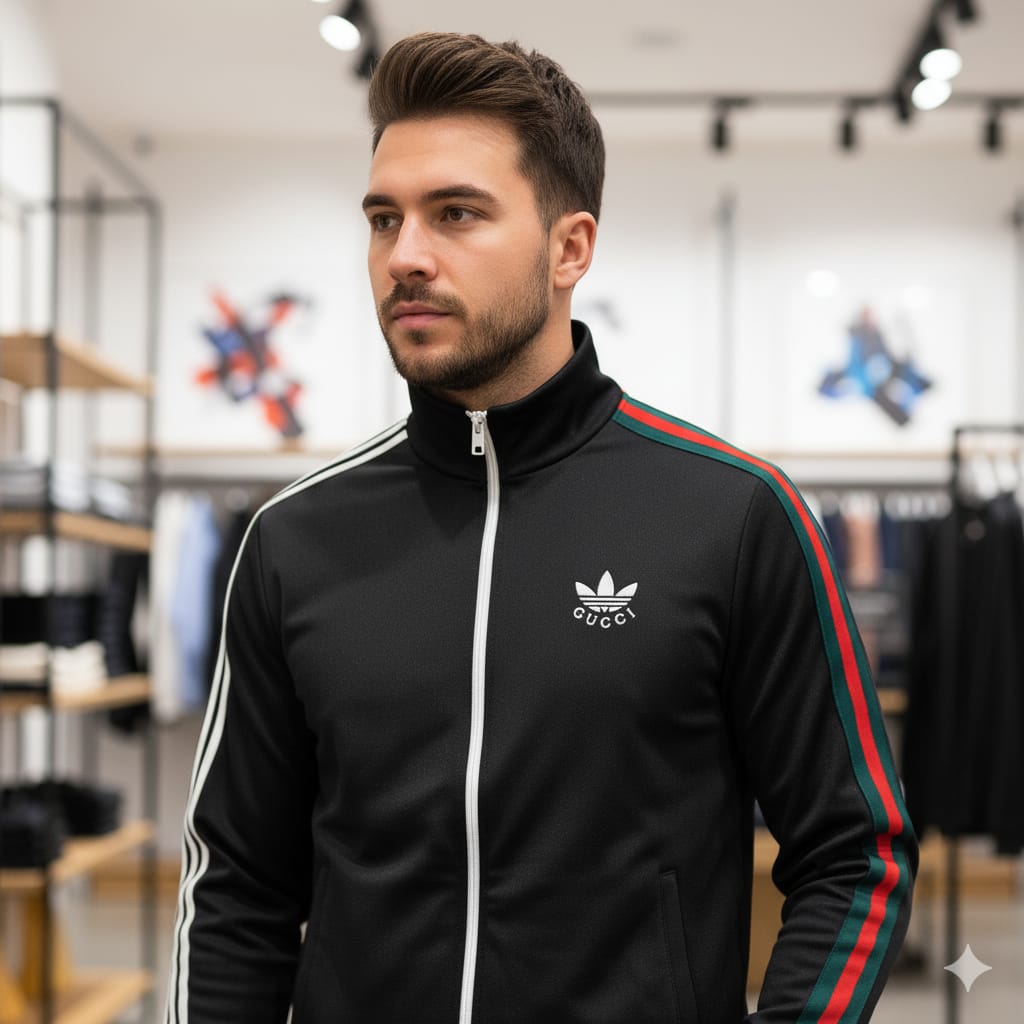 Men Black Athletic Track Jacket – Multi-Stripe Sleeve Design