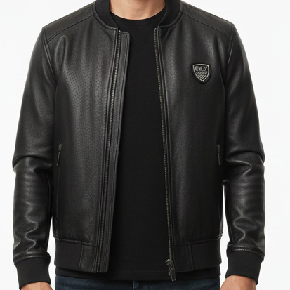 Men’s Premium Black Leather Bomber Jacket Classic & Stylish Look